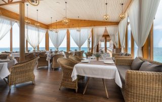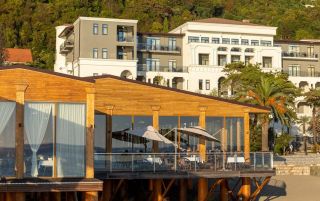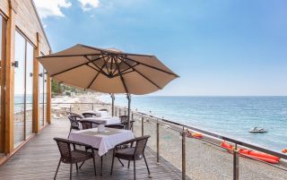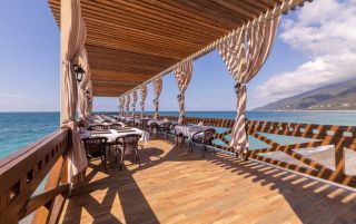 У отеля есть собственный оборудованный пляж. На песчано-галечном побережье установлен раздевалки, навесы, есть зонтики и шезлонги.